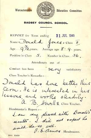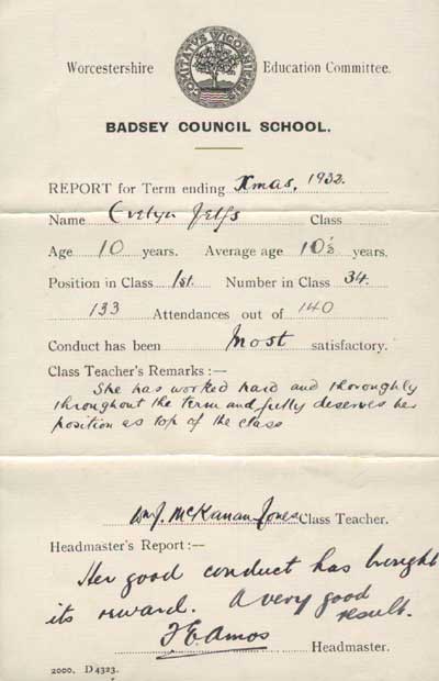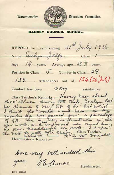 relative safety of the Badsey countryside. This school report is for one evacuee