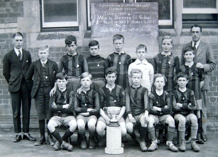 Football success. "In January 1920, Mr Amos began a Football Club, with the full support of the Managers. It was felt that a start should be made in this direction, even though organised games were not recognised by HMI as officially part of the school curriculum until several years later. By February 1920, they were ready to start competing against other schools, the first match being against Bretforton. ... The Badsey boys quickly proved themselves and in April 1921 were the first winners of the Evesham & District Schools’ League, winning by a margin of 13 points." - Maureen Spinks in Heads and Tales.