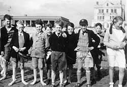 I think our first teacher was Mrs. Churchill (or Churchley) who lived just around the corner from the school, opposite the bus stop. (If her name was Churchill was she the mother of the head cook?) We made pancakes on Shrove Tuesday and were each served up with one slice of a rolled up pancake – I remember feeling cheated because I thought we were each going to get a whole pancake!